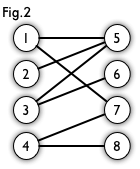 我们定义匹配点、匹配边、未匹配点、非匹配边,它们的含义非常显然。例如图 3 中 1、4、5、7 为匹配点,其他顶点为未匹配点;1-5、4-7为匹配边,其他边为非匹配边。