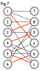 匹配:在图论中,一个「匹配」(matching)是一个边的集合,其中任意两条边都没有公共顶点。例如,图 3、图 4 中红色的边就是图 2 的匹配。