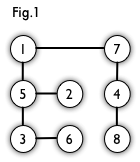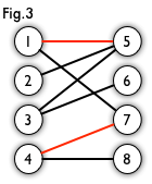 我们定义匹配点、匹配边、未匹配点、非匹配边,它们的含义非常显然。例如图 3 中 1、4、5、7 为匹配点,其他顶点为未匹配点;1-5、4-7为匹配边,其他边为非匹配边。