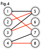 匹配:在图论中,一个「匹配」(matching)是一个边的集合,其中任意两条边都没有公共顶点。例如,图 3、图 4 中红色的边就是图 2 的匹配。